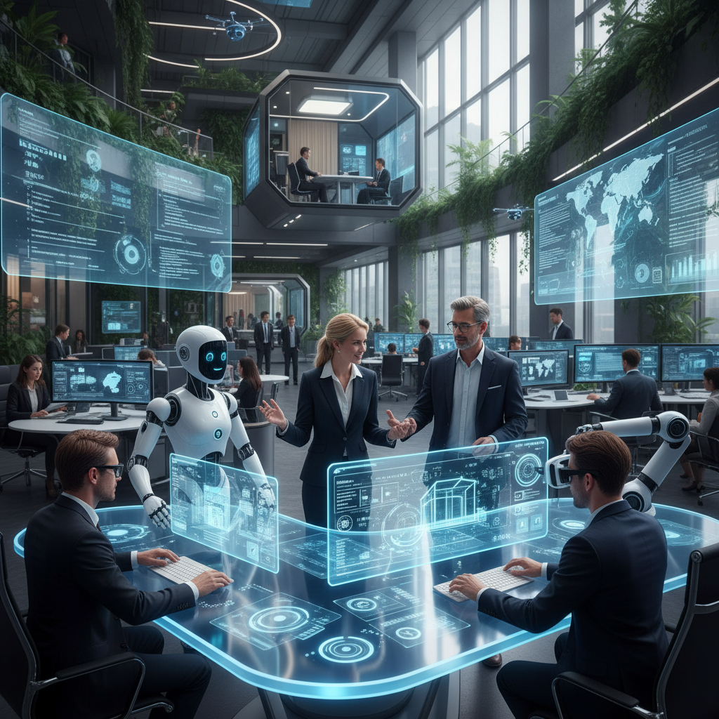 The evolving workplace with AI integration, showing the transformation of business culture and roles