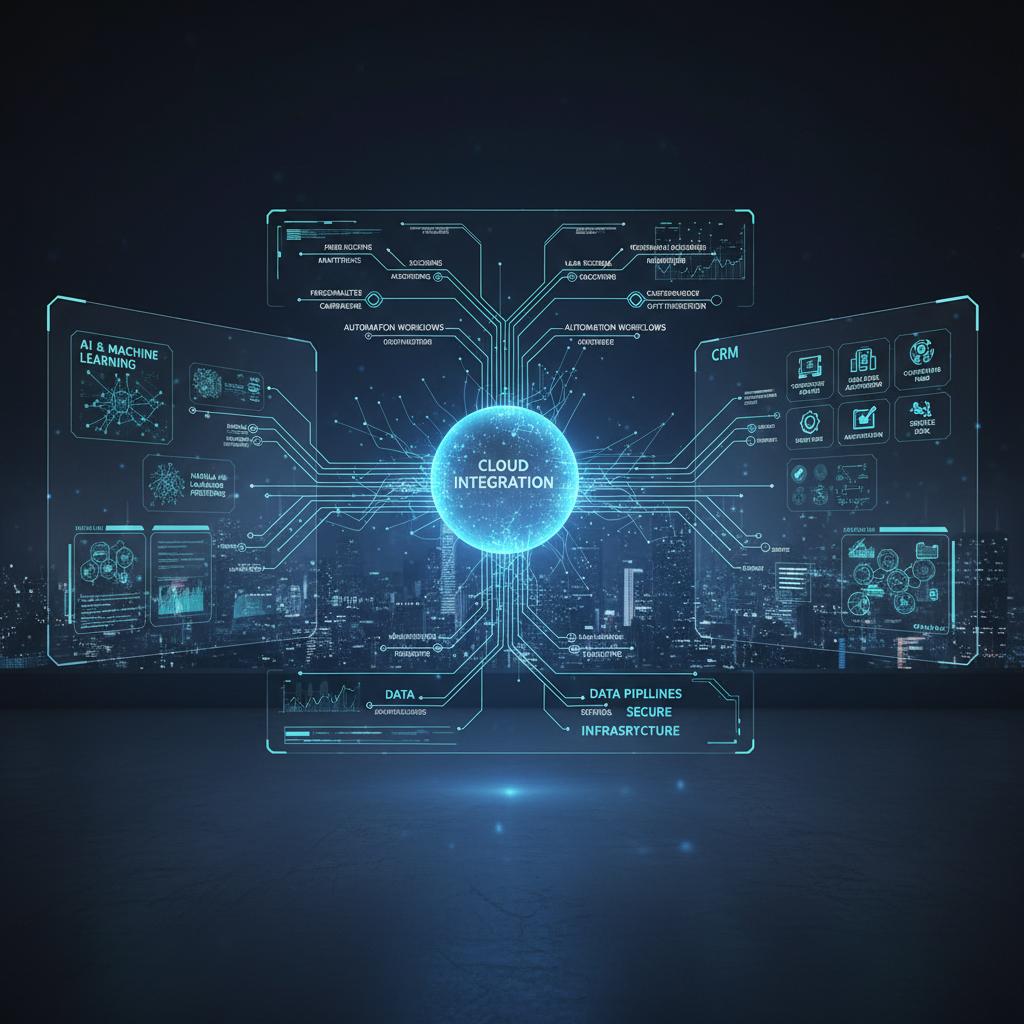 - Predictive analytics layer: Surfacing actionable insights, like lead scoring or churn risk.