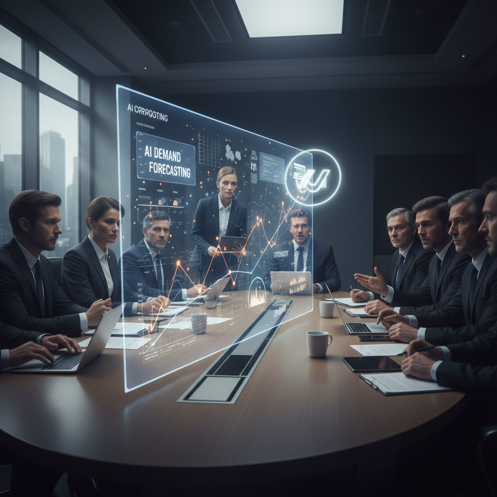 Business leaders evaluating readiness for AI-powered demand forecasting automation in a tense boardroom scene, underscoring the stakes and complexity.