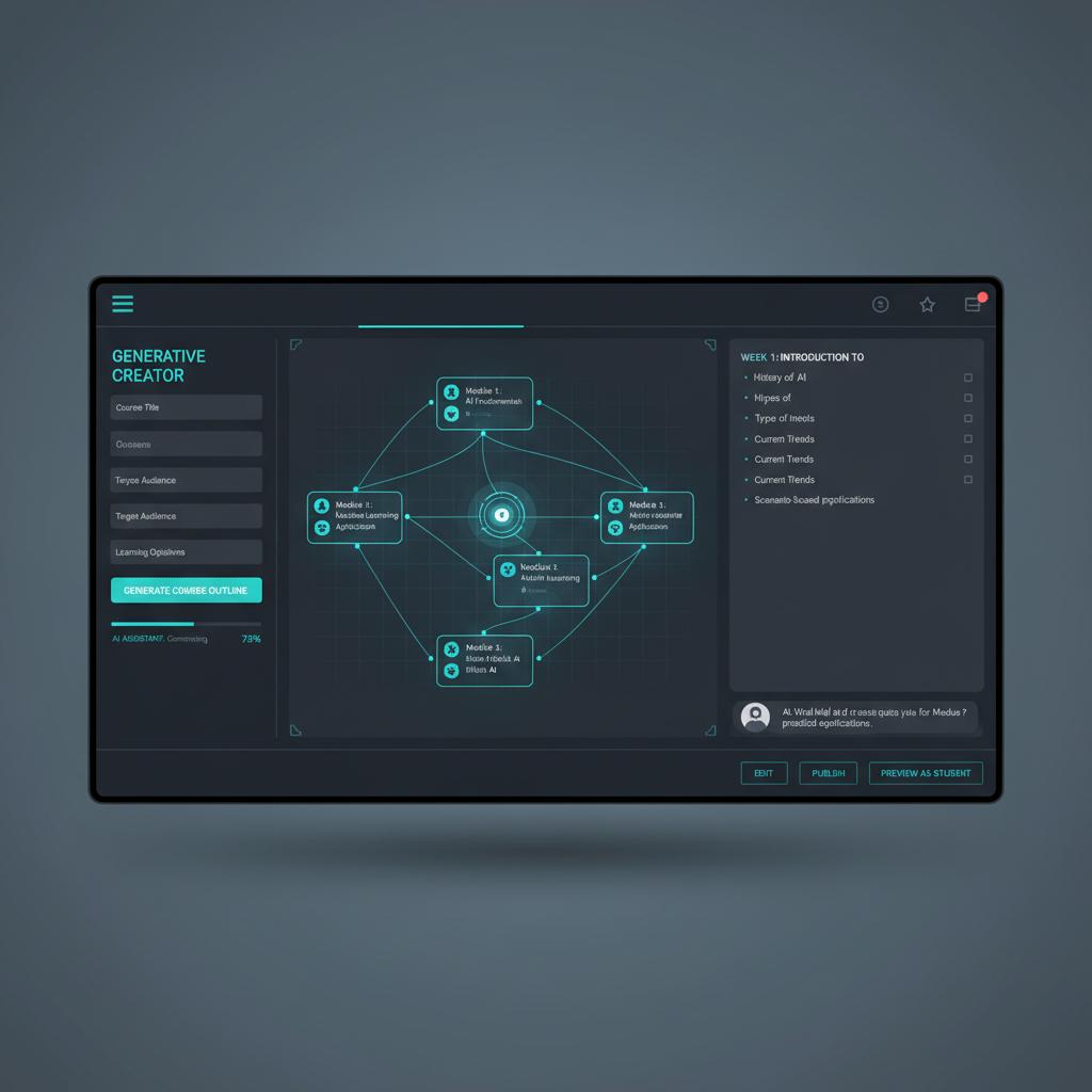 - Draft content creation: AI drafts lessons, quizzes, and multimedia assets.