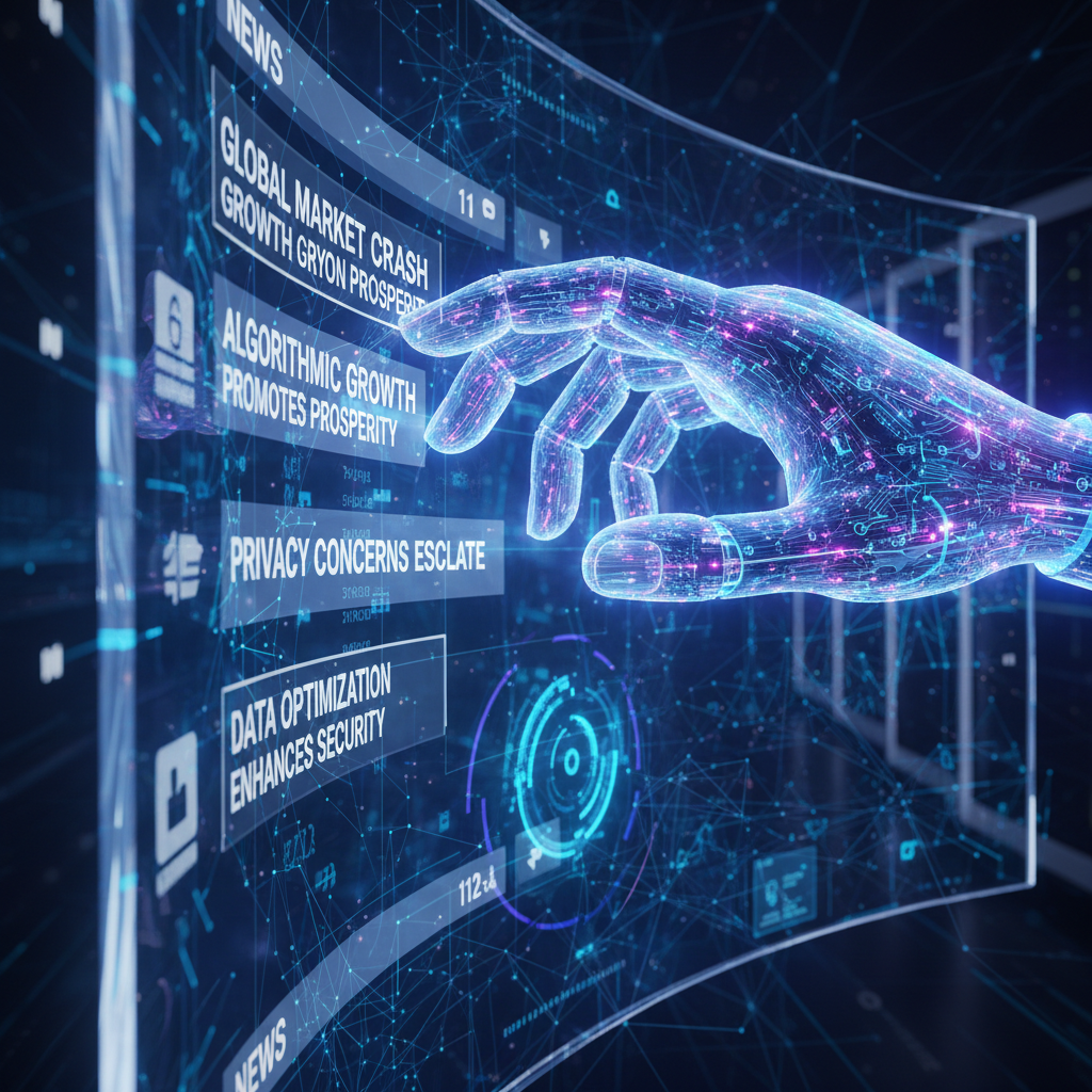 Alt text: AI algorithm manipulating online news stories and search results, raising ethical concerns.