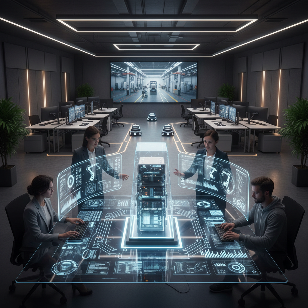 Photo of a sleek, AI-driven control center with digital screens, representing the underlying tech stack of workflow automation.