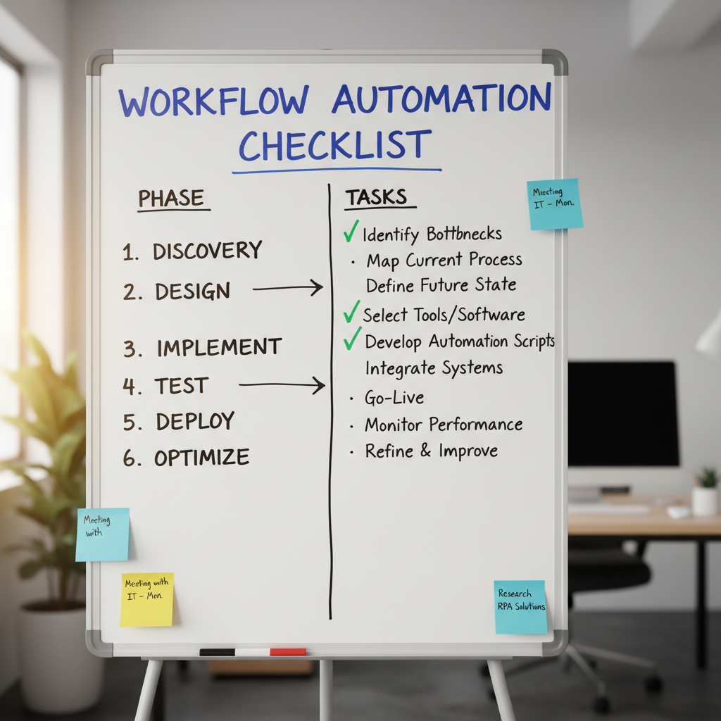 - Audit current workflows: Document every task, bottleneck, and dependency.