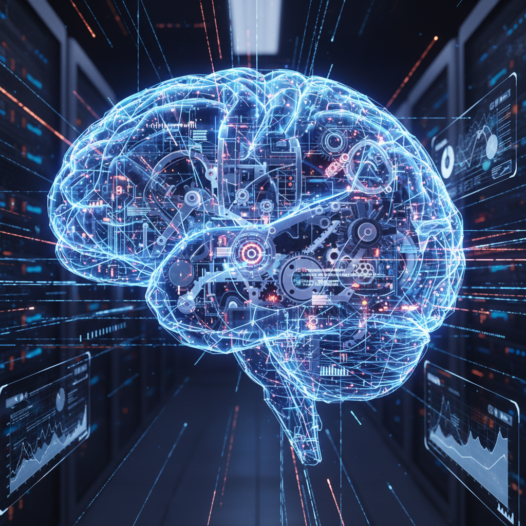 Alt text: Digital brain with active neural pathways, illustrating AI executing complex operational tasks.