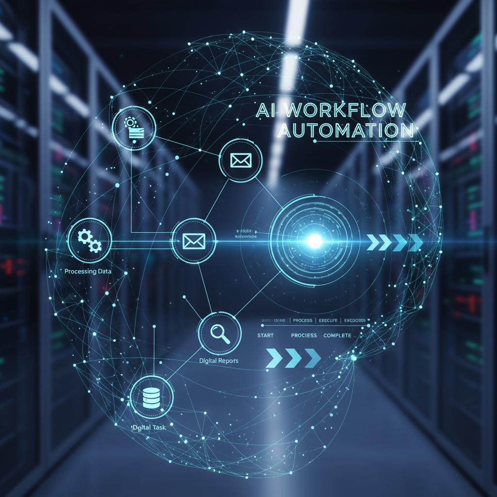 Alt text: AI-powered automation transforming digital tasks with visual nodes representing seamless workflow